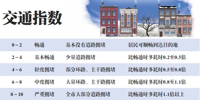 交通指数取值范围为0~10,分为五级,如下表:
